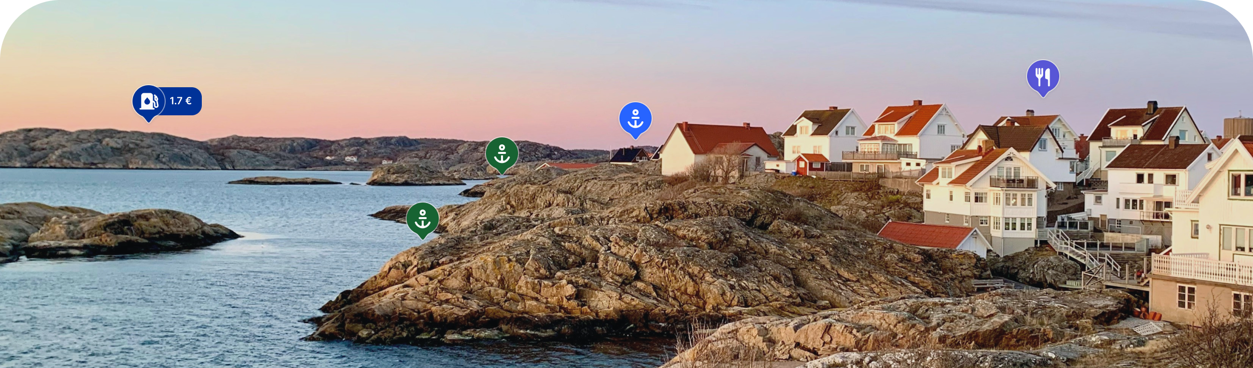 Lopeta etsiminen! Näytämme sinulle lähimmän sataman, veneaseman tai saaristoravintolan.