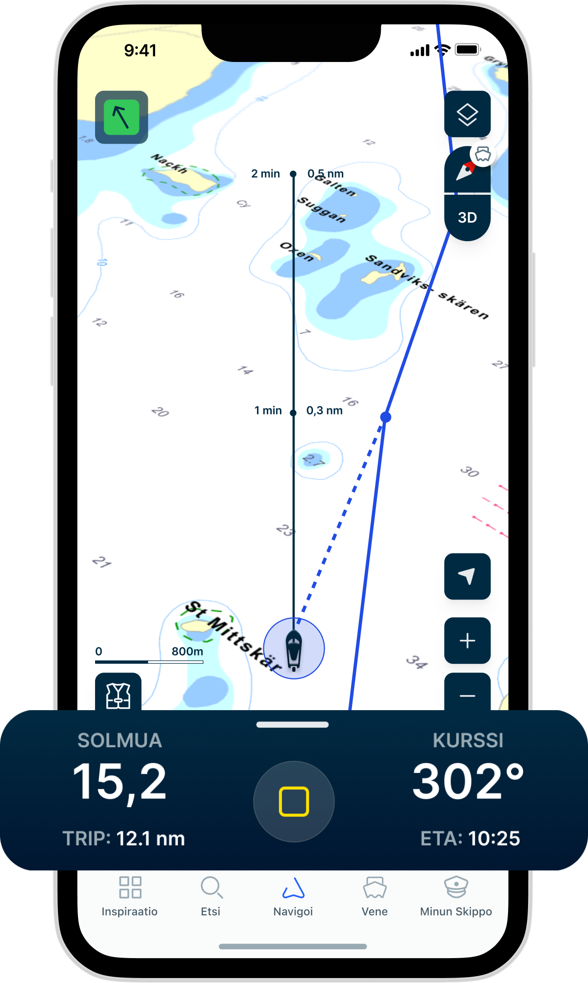 Navigoi pohjoismaisille vesistöille räätälöityjen älykkäiden toimintojen ja selkeiden karttojen avulla. Skippon automaattireititys antaa sinulle nopeimman reitin ja ohjaa sinut turvallisesti kohteeseen.